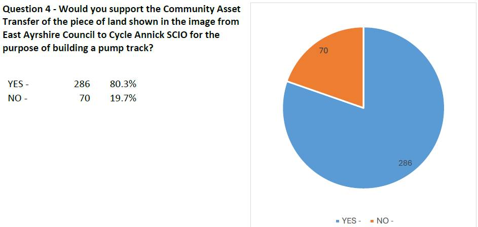 From the 356 responses received, 286 (80.3%) were in support of the propose community asset transfer to allow us to develop the pump track.